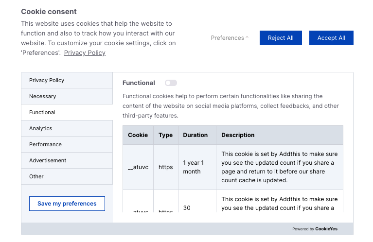 This comes with tons of integrations with primary CMS such as Wordpress, Jumla, Drupal, blogger and many more. CookieYes also supports over 30 languages making it easy to manage users from multiple regions while abiding to the regulations.