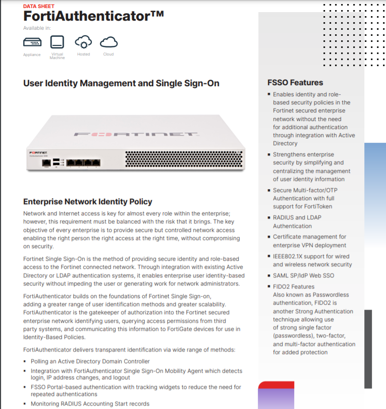 The FortiAuthenticator helps IT Team to centralize management for User Identity and FortiToken.