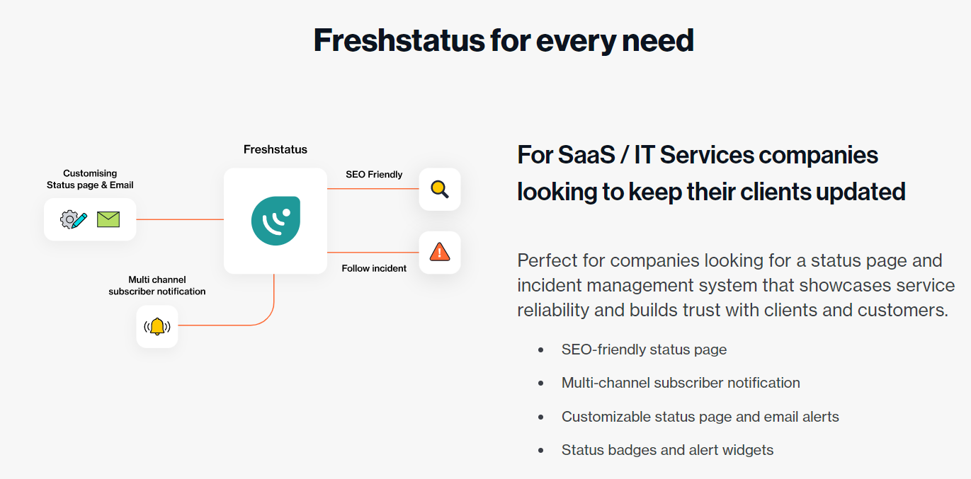 Freshstatus is a Status Page and an Incident Communication Software. ... Manage Incidents and communicate status updates in realtime with your teams and customers.