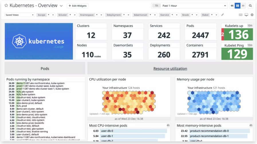 Datadog’s SaaS-based infrastructure monitoring provides metrics, visualizations, and alerting to ensure your engineering teams can maintain and optimize your cloud or hybrid environments. With extensive coverage of popular technologies, a simple deployment process that requires little maintenance, and an easy-to-use interface, Datadog helps teams communicate and troubleshoot more effectively.