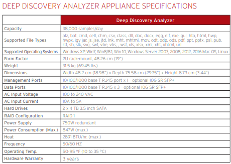 Deep Discovery Analyzer is a network device that may be purchased as a physical or virtual network appliance. It's made to quickly detect advanced malware that gets through traditional security protections and steals critical information. Breaches are detected and prevented using specialised detection engines and bespoke sandbox analyses.