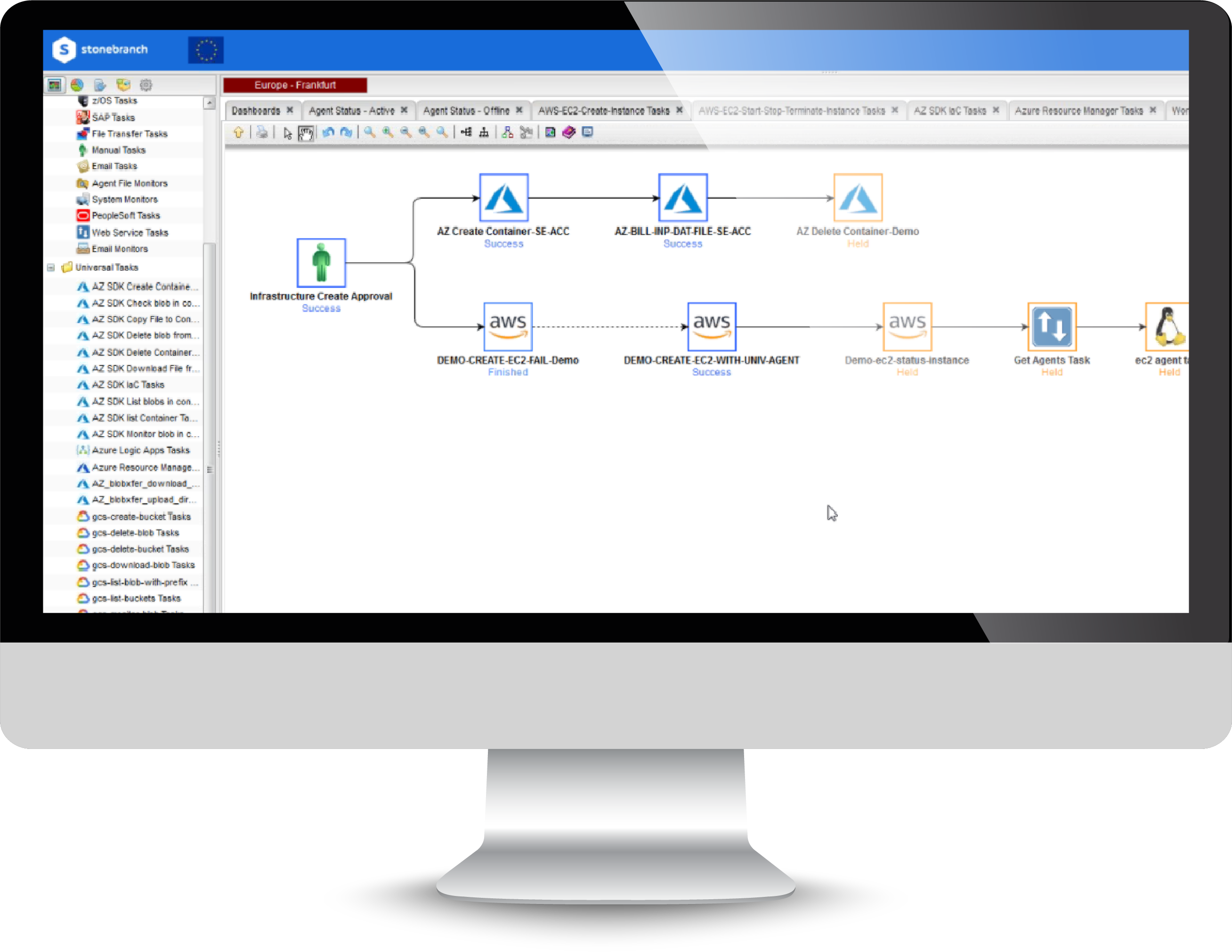 Stonebranch is a Hybrid IT automation software platform for workflow orchestration of IT tasks, jobs, and workloads across both on-premises and cloud environments.