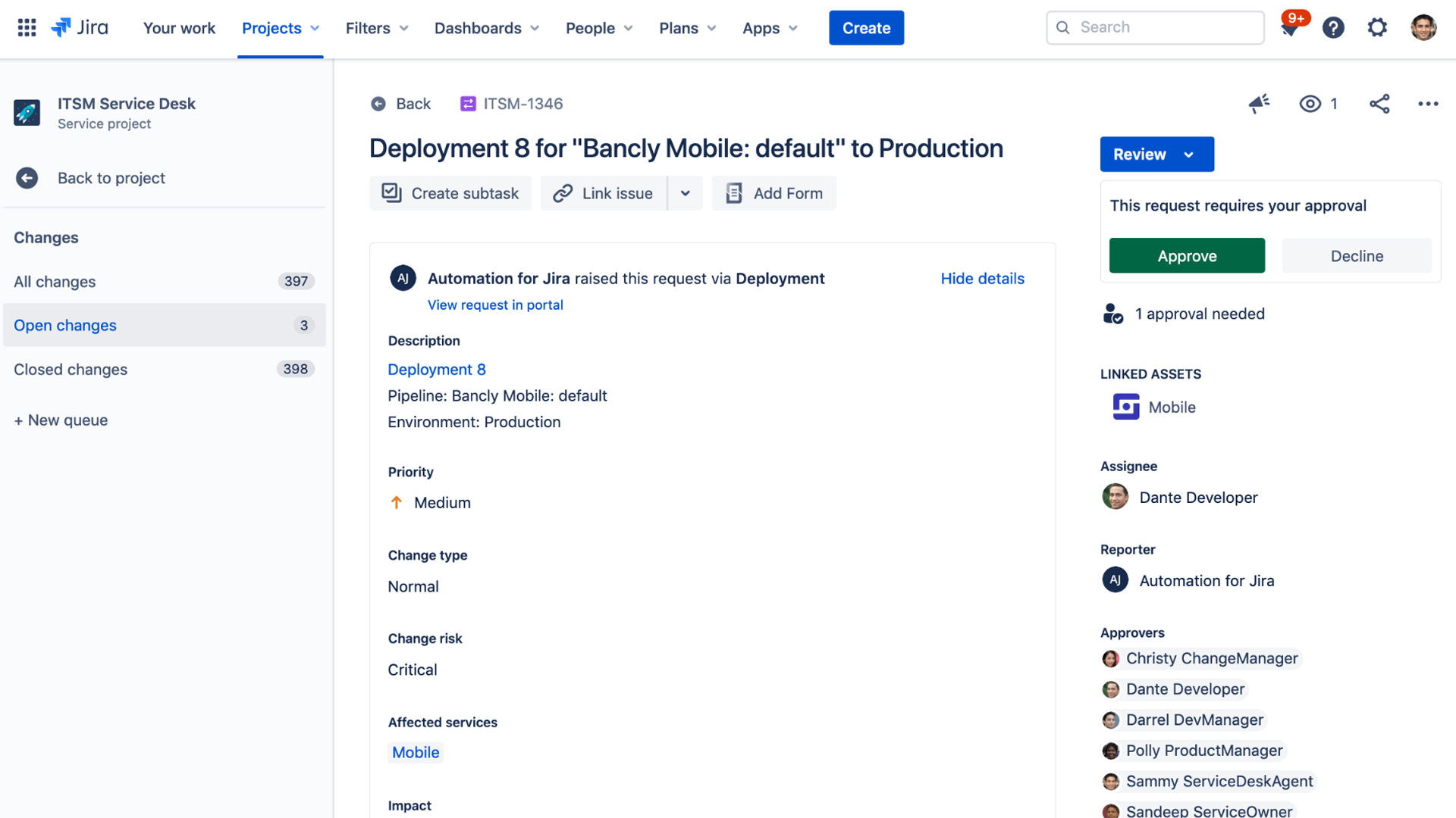 Jira Service Management enables Dev and Ops teams to collaborate at high speeds, allowing them to quickly adapt to business changes and provide excellent customer and employee service.