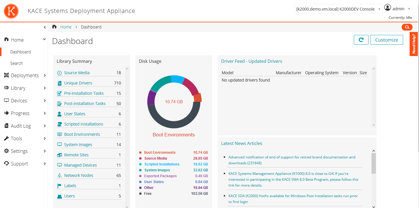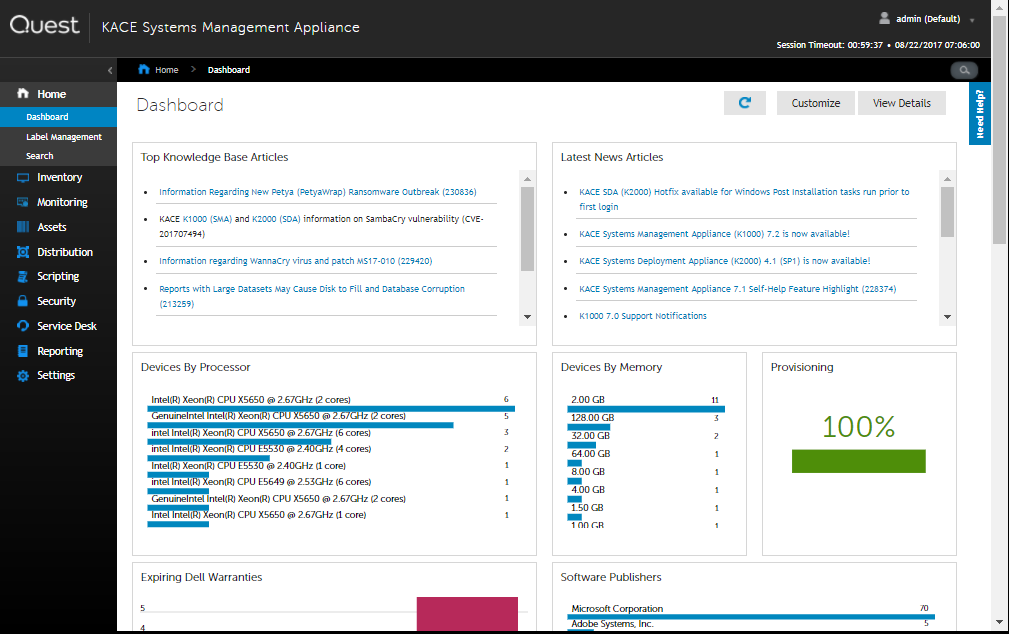 KACE's easy-to-use systems management and deployment solutions provision, manage, secure, and service your growing organization's network-connected devices, such as Windows PCs, Macs, Chromebooks, tablets, Linux, UNIX, and Windows Servers, printers, storage, and the internet of things (IoT), all while delivering a quick return on investment.