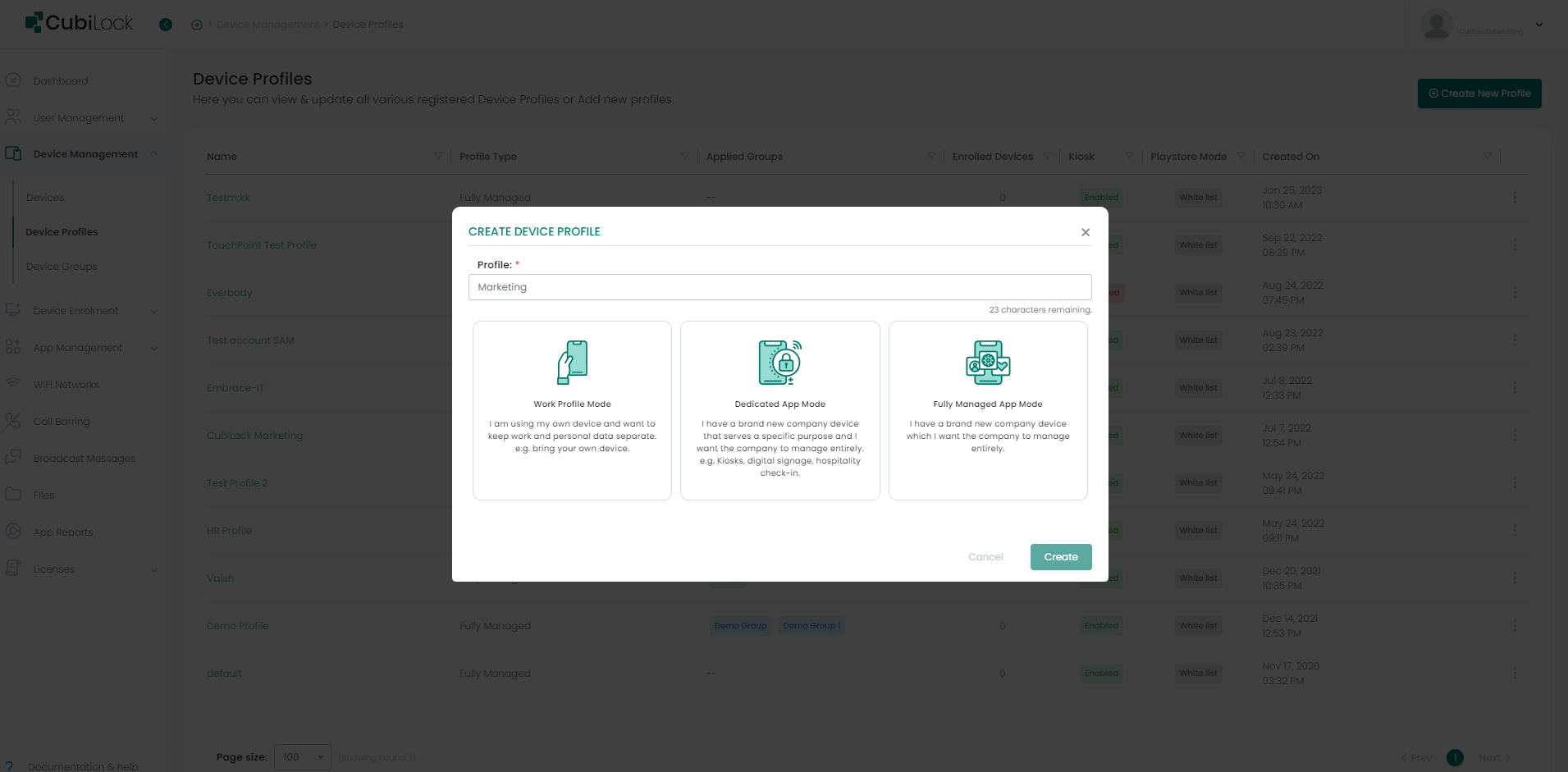 Mobile Device Management, Enterprise Mobility Management, Kiosk Lockdown, Device Management, Endpoint Management, Geofence, Bring Your Own Device(BYOD), Zero-trust, Application Management, and VPN Configuration.