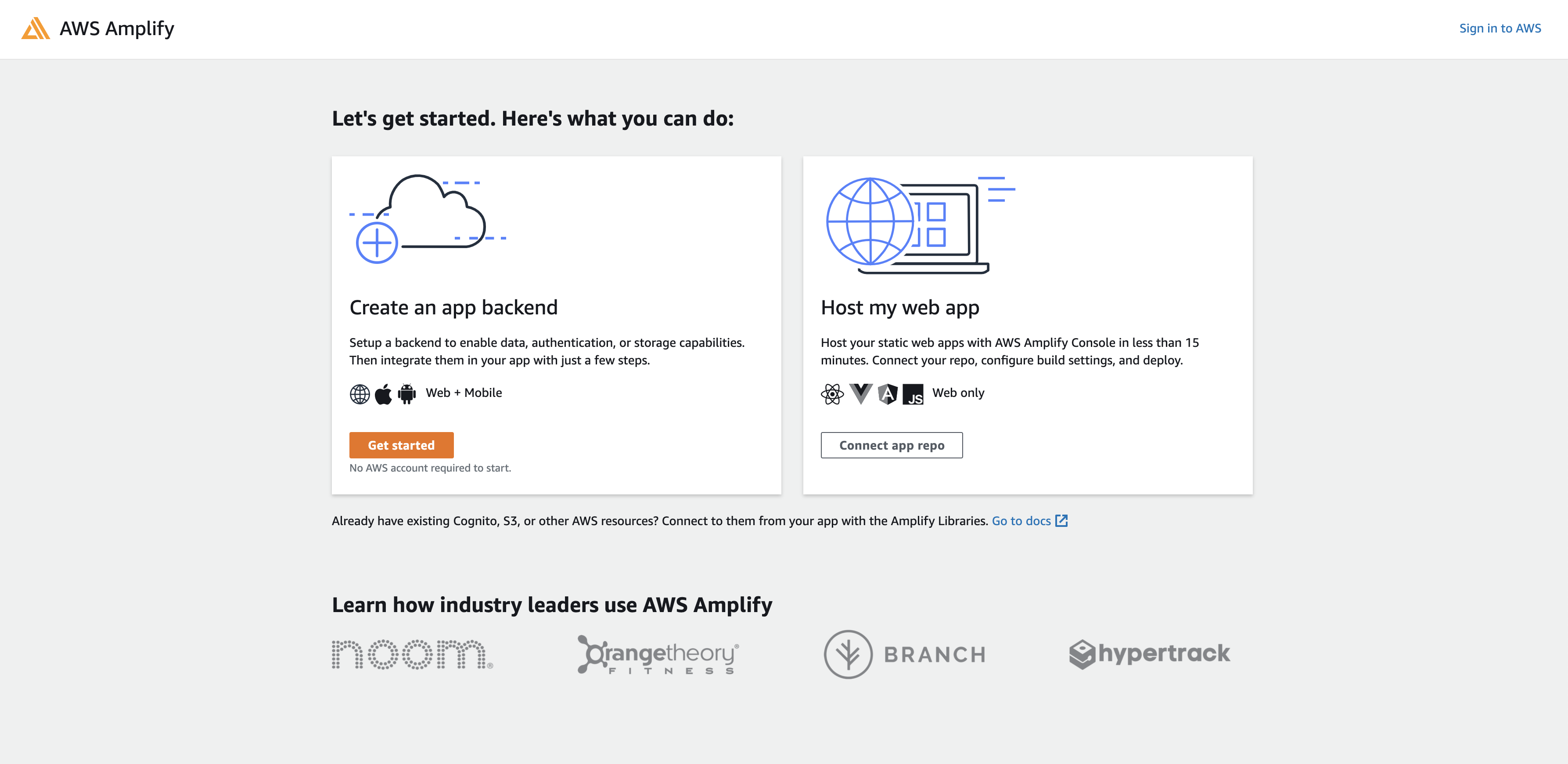 With Amplify, developers can harness the power of AWS cloud services without worrying about managing the underlying infrastructure. Amplify removes the complexity of building and deploying scalable cloud-native applications, freeing developers to focus on writing quality code and delivering new applications faster.