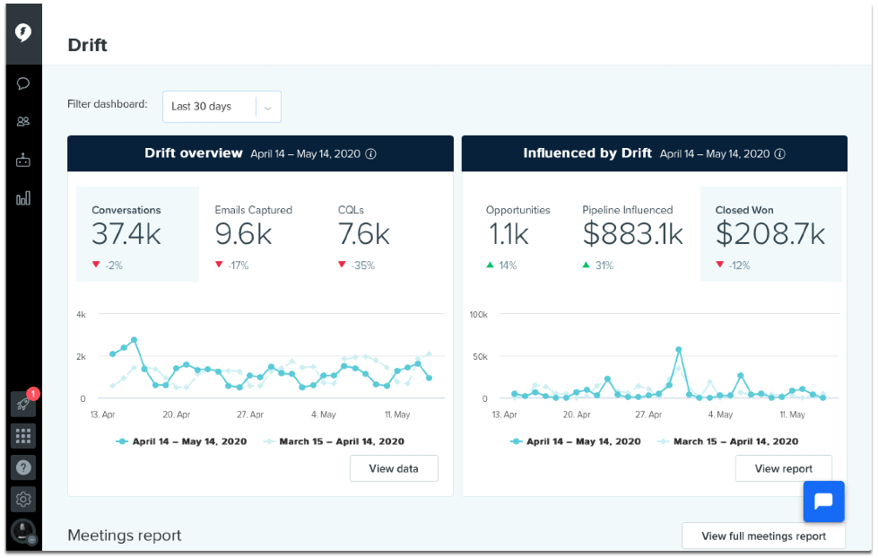 Additionally, Drift offers advanced analytics and reporting tools. Businesses can gain insights into visitor behavior, chat performance, and lead generation metrics, enabling data-driven decision-making and continuous optimization of marketing and sales strategies.