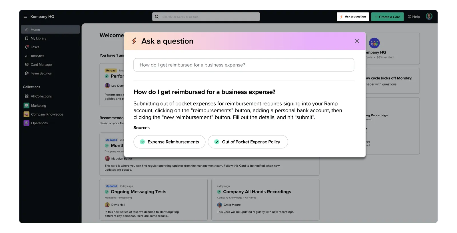 At the heart of Guru is its intuitive knowledge base, where teams can capture and store their collective knowledge. The platform provides a user-friendly interface that allows users to quickly create and update content, ensuring that knowledge remains accurate and up-to-date. With Guru's robust search functionality, users can find the information they need in seconds, eliminating the need to sift through endless documents or rely on memory.
